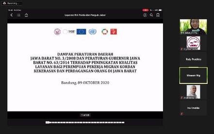 Pada tanggal 9 Oktober 2020, Yayasan SAPA mengadakan pertemuan dengan Tenaga Ahli Gubernur Provinsi Jawa Barat untuk mengkonsultasikan hasil kajian yang telah dilakukan dan menyepakati rumusan masalah, tujuan dan opsi alternatif tindakan terkait dengan implementasi perda dan pergub terhadap peningkatan kualitas layanan. Yayasan SAPA dan UN Women melalui program Safe and Fair telah melakukan serangkaian workshop terkait membangun mekanisme layanan bagi perempuan pekerja migran korban kekerasan dan perdagangan orang yang melibatkan pemerintah di tingkat provinsi, kabupaten dan lembaga layanan masyarakat di Jawa Barat. Maka sebagai hasil rekomendasi dari beberapa kegiatan yang sudah dilakukan, Yayasan SAPA bersama UN Women melaksanakan kajian tentang “Dampak Peraturan Daerah No. 3/2008 Dan Peraturan Gubernur No. 63/2014 terhadap Peningkatan Kualitas Layanan bagi Perempuan Korban Kekerasan termasuk Perempuan Pekerja Migran di Jawa Barat” sejak bulan Maret hingga November 2020. Kajian ini dilakukan di 5 wilayah di Jawa Barat, yaitu Kabupaten Bandung, Cirebon, Sukabumi, Majalengka, dan Provinsi Jawa Barat.